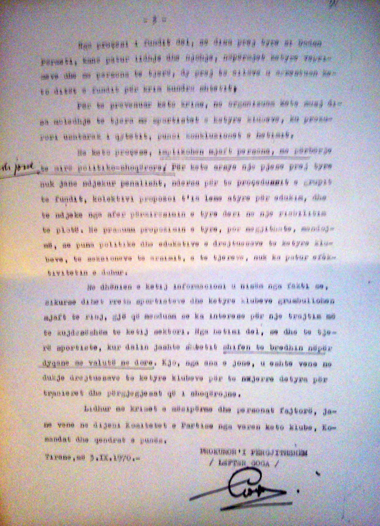 Për periudhën 1 janar 1955, 30 mars 1957, t’i thuhet se shpërblimi i caktuar nuk i jepet, për arsye se nuk ka vepruar sipas udhëzimeve tona, dhe si konsekuencë ka shkëputur lidhjet me zbulimet e huaja dhe nuk ka treguar interesim për zbatimin e detyrave të ngarkuara.