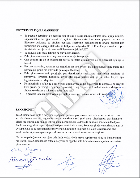 “Drejtoria e Përgjithshme e Taksave dhe Tarifave Vendore nuk ka lidhur kontrata me subjekte tregtare për shfrytëzimin e hapësirave publike”, thuhej në shkresë. Por vetëm pak rreshta më poshtë, e njëjta drejtori pohonte të kundërtën: informacioni ekzistonte, por konsiderohej “e dhënë personale”.