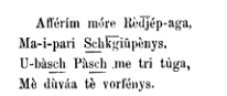 Alfabeti i gjuhës shqipe me germa latine i Zef Jubanit.