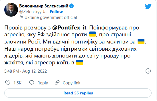 Zelensky telefonatë me Papa Françeskun: E informova për tmerret që Rusia po kryen në Ukrainë