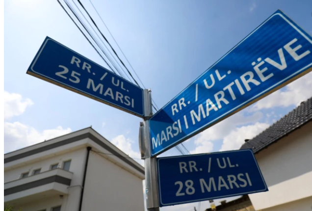Shenjat që tregojnë emrat e rrugëve në fshatin Tërrnje të Suharekës.
