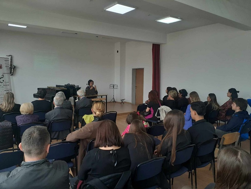 Nga ana tjetër përmes një performance që u duartrokit gjatë nga të pranishmit e shumtë, kori dhe orkestra e shkollës me solistë, artistë të ardhshëm interpretuan vepra të kompozitorit Zeqirja Ballata, Antonio Vivaldi e Camille Sain Saens.