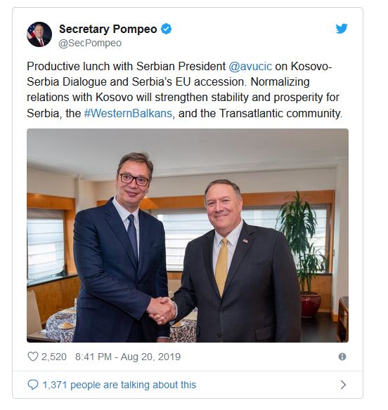 Zëri i Amerikës – Pompeo: Njohja reciproke në bazë të normalizimit të marrëdhënieve Serbi – Kosovë